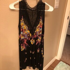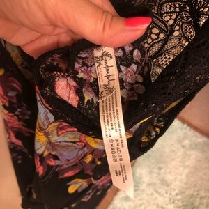 Elegant black top with vibrant floral design. Features intricate lace detailing. Perfect for any occasion.
