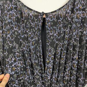 Free People | Black Floral Lace Trim Long Sleeve Midi Dress Size