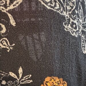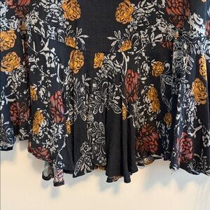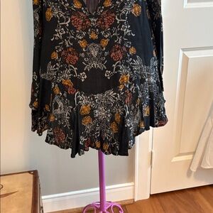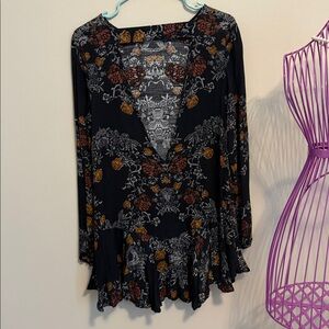 Chic, flirty dress with vibrant floral design. Features long sleeves and flowy hem. Ideal for versatile styling. Multiple pictures to display the gauzy material that is semi sheer. Might be some pilling but hard to tell with the gauze type material. Please refer to pictures. Flowing and cute.