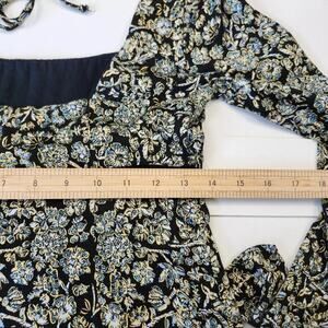 Free People Black Floral Mini Dress Long Sleeve Ruffle Boho NWT Size 2
