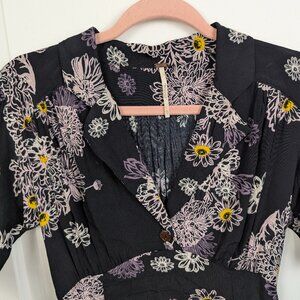 Free People | Black Floral Short Sleeve Mini Dress Size Small
