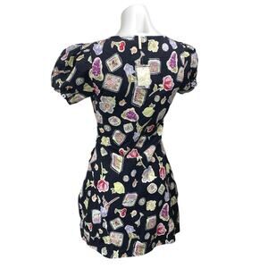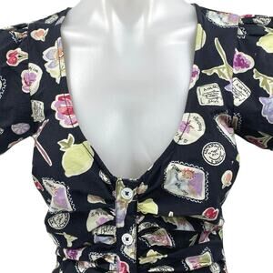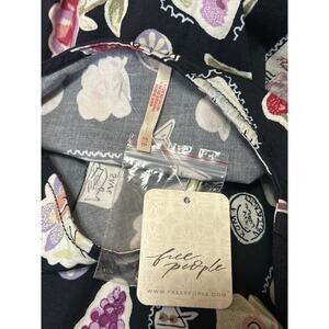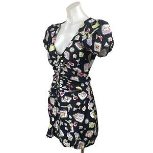 Free People Black Floral Sticker Short Sleeve Vneck Ruched Mini Bodycon Dress XS