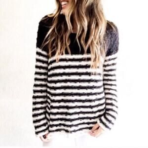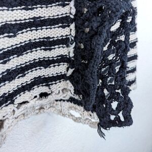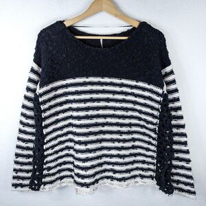 Free People Black French Creek Crochet Sweater Open Knit Boucle Stripe Small