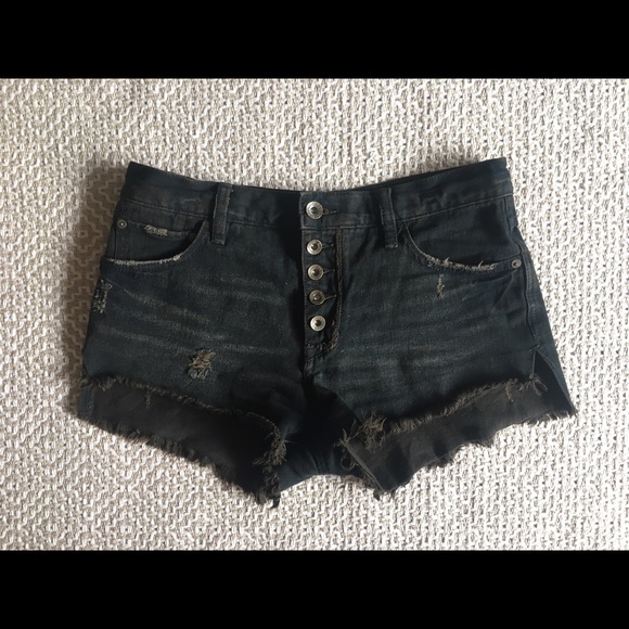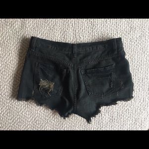 Distressed Free People shorts in black. These shorts fit a little high waisted but not too high.