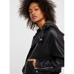 Free People Black Full Zip Drapey Vegan Moto Jacket Size Small