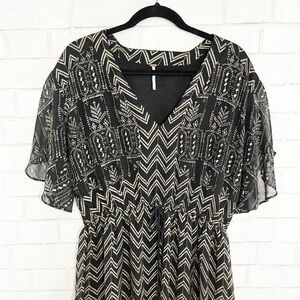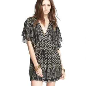 Free People Black & Gold Love Your Chaos Metallic Mini Dress Women's Size Small