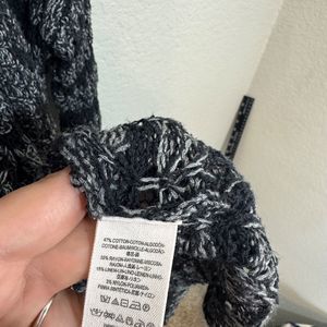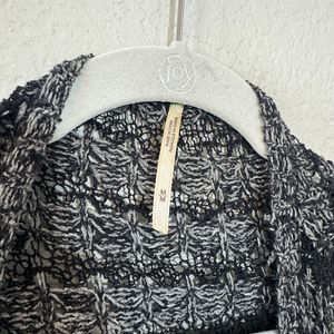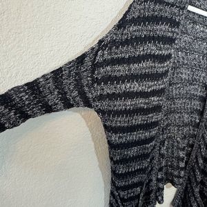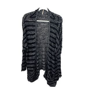 Free People Black Gray Striped‎ Knit Open Front Long Sleeve Cardigan Sweater M