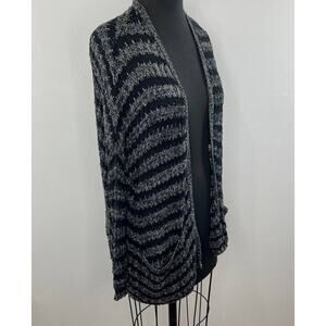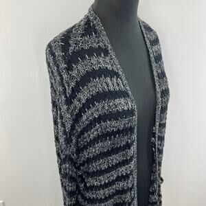 Free People Black Gray Striped Knit Open Front Long Sleeve Cardigan Sweater XS