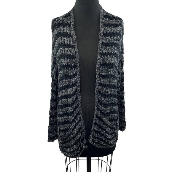 Free People Black Gray Striped Knit Open Front Long Sleeve Cardigan Sweater XS