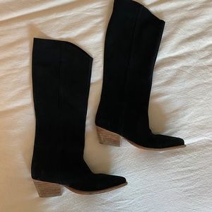 Chic black heeled boots. Sleek design. Perfect for any occasion.