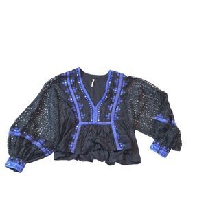 Free People Black Lace Balloon Long Sleeve Boogie All Night Womens Size S Boho