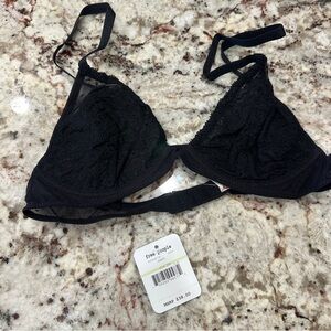 Elegant black lace bralette by Free People. Features adjustable straps. Perfect for layering.