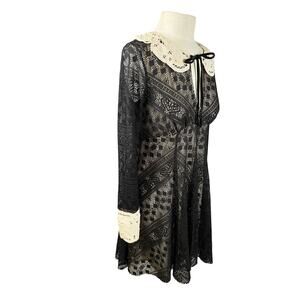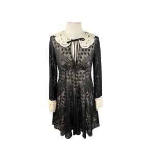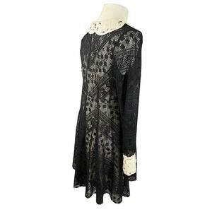 Free People Black Lace Talk That Talk Peter Pan Collar Fit Flare Dress 2 60's