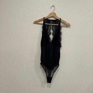Elegant black top with lace trim. Sleeveless design. Perfect for layering or going out.