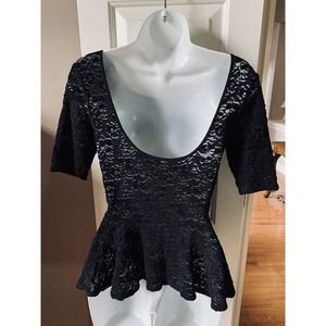 Free People Black Lacey Peplum Short Sleeve Top XS