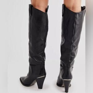 Free People Black Leather Knee High Stevie Boots Heeled Pointed Toe Western 39