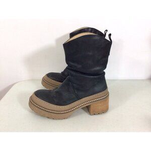 Free People Black Leather Slouch Boots Mel Western Boho Womens 8