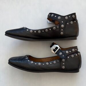 Modern black flats with silver studs. Leather Mary Jane’s with adjustable strap. Worn a few times. 37.5