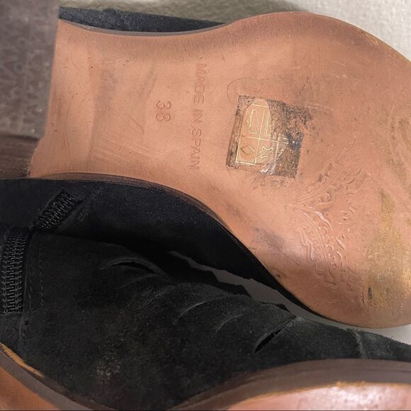 Free People Black Leather Suede Cut Out Low Heel Ankle Booties size 7.5