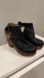 Free People Black Leather & Suede Wood Heel Amber Orchard Platforms Size 10