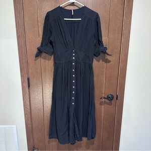 Free People Black Long Sleeve Button Down Love Of My Life Midi Dress
