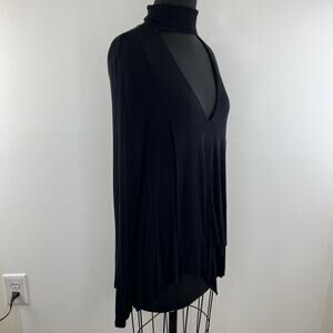 Free People Black Long Sleeve Cut-Out Neckline Uptown Turtleneck Size XS