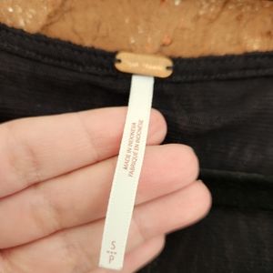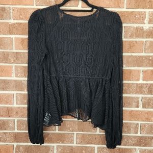 Free People Black Long Sleeve Flowy Low Cut Lace Top w/Bow