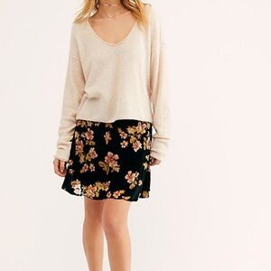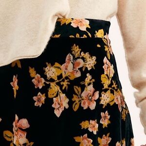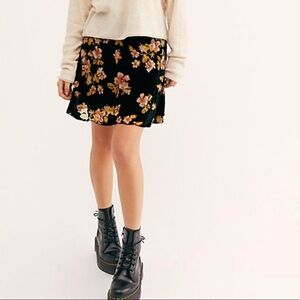 Swingy A-line mini skirt featuring in a velvet design with a burnout floral pattern and a high-rise waist.