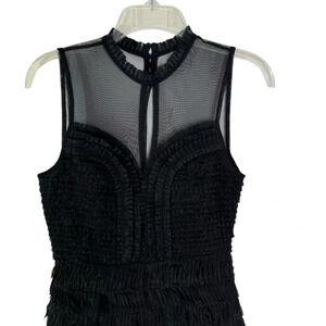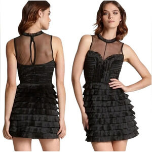 Free People Black Mesh Pleated Ruffle Tiered Mini Cocktail Party Dress