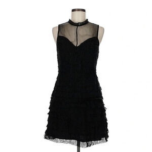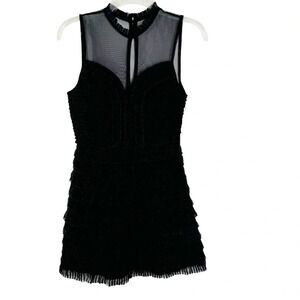 Free People Black Mesh Pleated Ruffle Tiered Mini Cocktail Party Dress Size 0