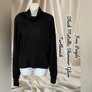 Free People | Black Metallic Shimmer Glam Turtleneck
