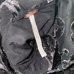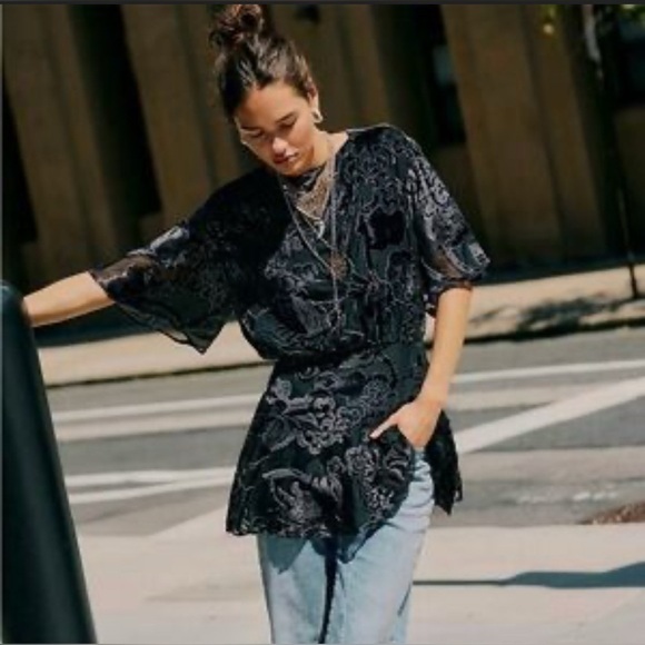 Elegant black mini dress with intricate patterns. Flowy sleeves and relaxed fit. Perfect for casual outings.