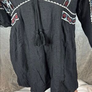 Free People Black Mini Dress with Embroidered Details