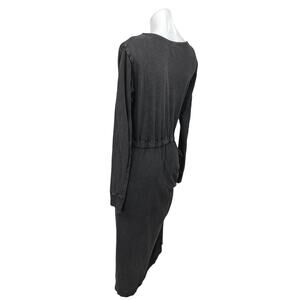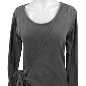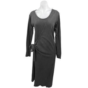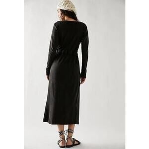 Free People Black Molly Side Tie Scoop Neck Long Sleeve Wrap T Shirt Slit Maxi Dress Sz M