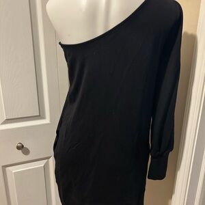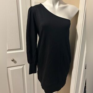 Stylish one-shoulder dress by Free People. Features a sleek black design. Perfect for a night out. Like new!