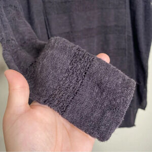 Free People Black Open Knit Linen Blend Wild Horses Henley Sweater Top Size XS