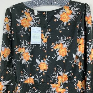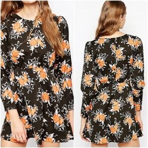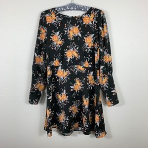 Free People | Black & Orange Floral Print Dress