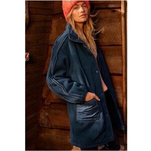Free People Black Oversized Glacier Fleece Jacket Black Size M NWT