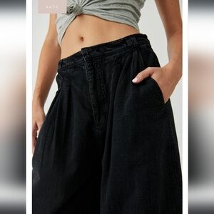 Stylish black pants. Features a unique chain belt. Perfect for casual or chic looks.