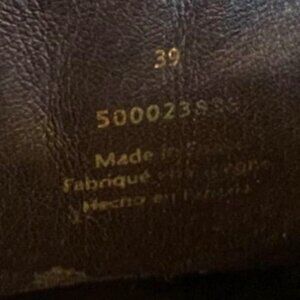 Preowned, very good condition. Heavy creasing across vamps; insole has some discoloration to leather and brand stamp. Sole wear is minimal and heels are stable.