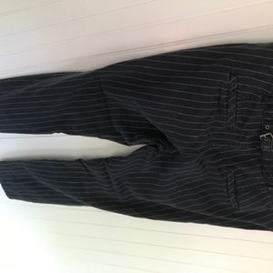 Stylish black trousers with white pinstripes. Features front pockets and button closure. Perfect for a chic look. Reposhing only because it doesn’t fit me! Perfect condition, clean home.