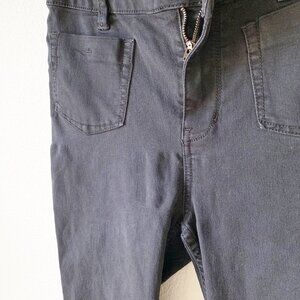Pre-loved, has slight spandex stretch. Zip doesn't go down fully, still easy to get on because it stretches (Photo 3). Zip fly with button closure, front patch pockets, stretch denim. See photos for details.