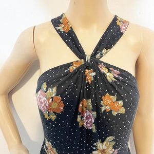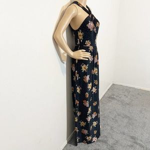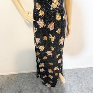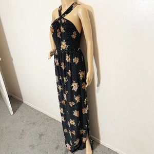 Free People Black Polka Dot Floral Maxi Dress Sz S Boho Festival Summer