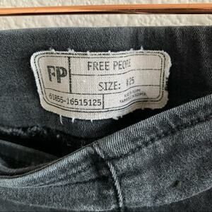 Free People Black Pull On Skinny Jeans. Faded black, distressed hem.