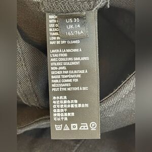 Waist 17”, rise 10, inseam 31”. Pockets on back. Rich black in excellent condition. Questions? Leave a comment below!