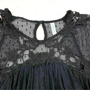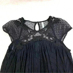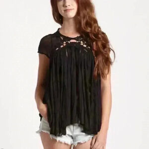 Free People Black Rayon Blend Lace Cap Sleeve Fit & Flare Babydoll Top Size XS