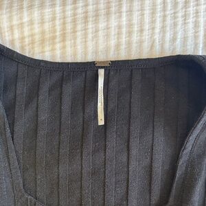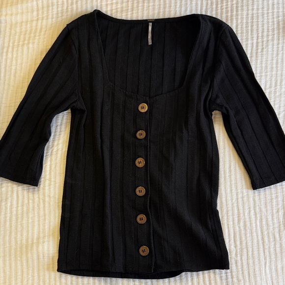 Free People Black Ribbed Button-Front Top
