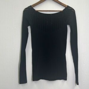 Free People - Black Ribbed Form Fit Cutout Long Sleeve Top Size Medium/ Large