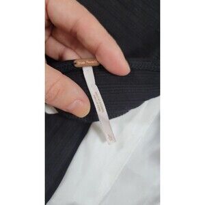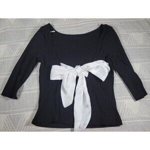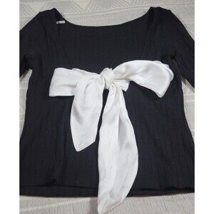 Free People Black Ribbed Knit Top with White Satin Bow — Size L