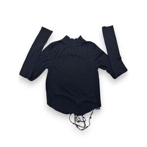 Free People Black Ribbed Mock Neck Long Sleeve W/ Braided Back Size Small